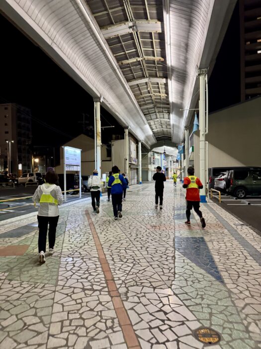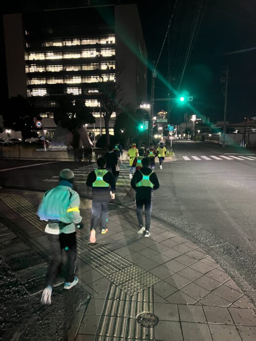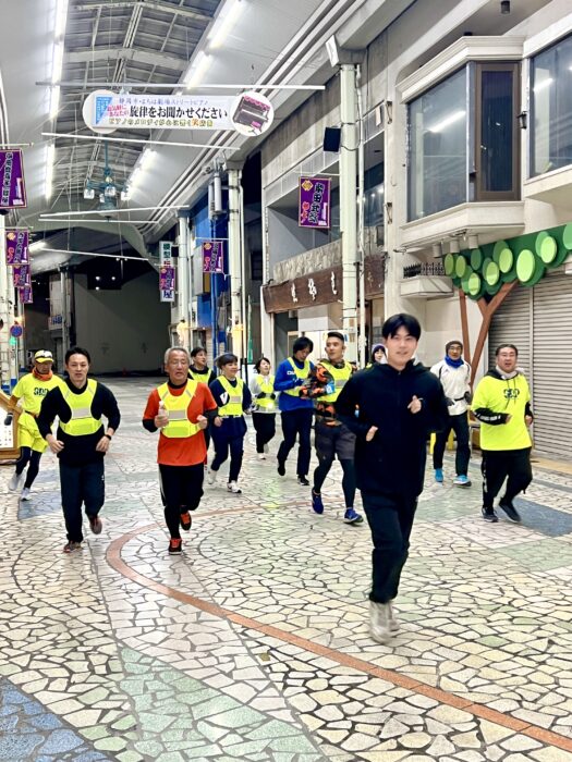 参加者の皆さんと一緒に夜間の街を走りながら、歩行者へ挨拶をすることで市民の皆様が防犯への意識を高めるキッカケとなり、明るく犯罪のない街になればという思いで活動されております。