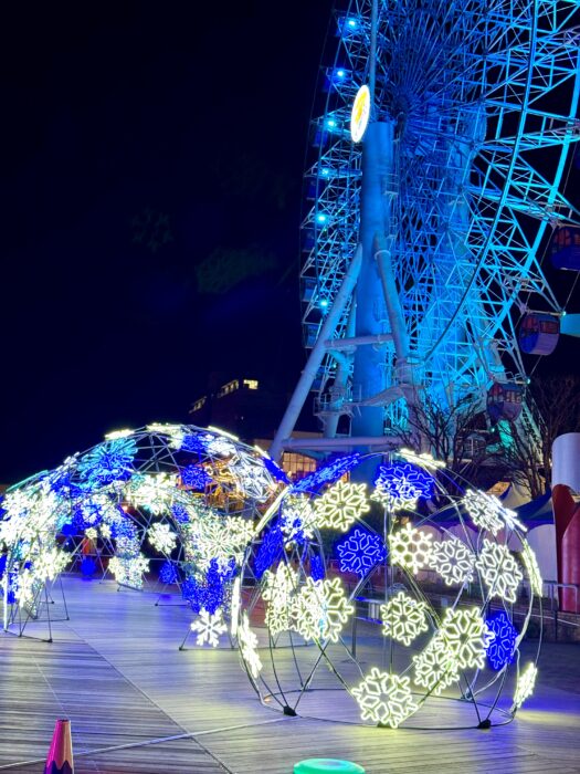 エスパルスドリームプラザでは、現在「アイススケートリンク」が設置されており、キラキラと輝くライトアップともに冬の港町を彩っています。