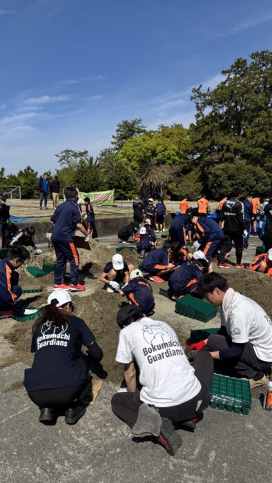 NPO法人グラウンドキーパーズの皆さまを中心に、株式会社エスパルスの方、地元の企業よりの参加者の皆さん、サッカークラブの子供達と保護者の方など150名以上の方が参加されておりました。