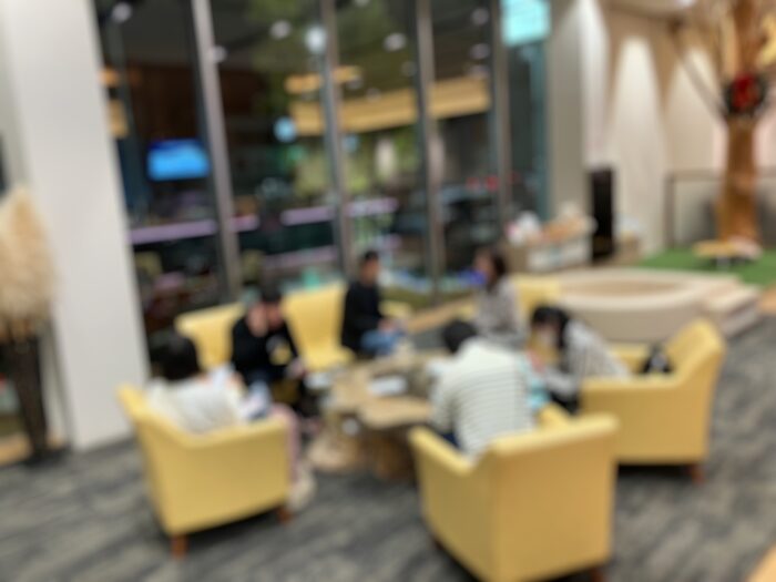 店舗のラウンジスペースは、cafeスペースもあり落ち着いた空間の中で、参加者はリラックスした雰囲気でプロフィールカードを片手に1対1のペアトークからスタート。その後、軽食やスイーツとソフトドリンクを楽しみながら自然な交流が進みました。