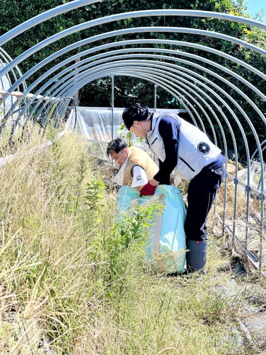 皆で汗をかきながらも、残っていた雑草ハウスを綺麗にしました。