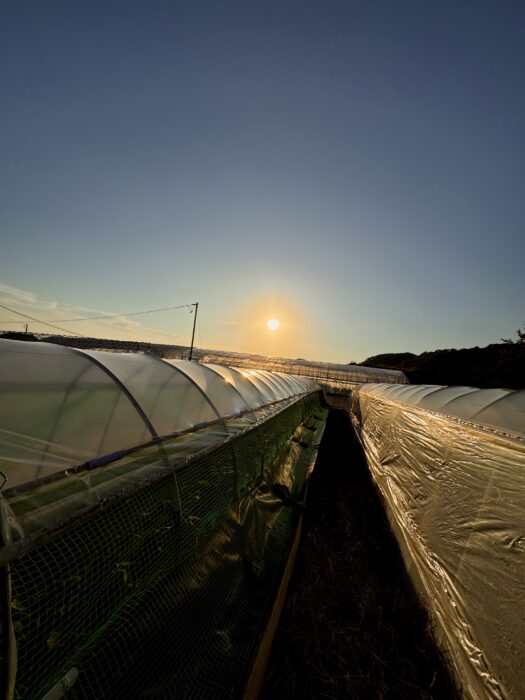 全ての作業が終わる頃には夕陽がハウスを照らしていました。