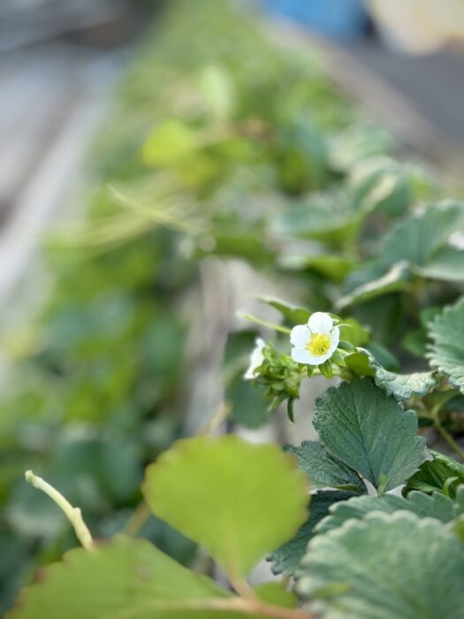 そんな環境の中でも葉っぱも大きく育ち、中にはすでに可憐な白い花を咲かせている苗もあり、植物の生命力の強さと、日々丁寧に育てている農家の皆さんの努力を感じました。