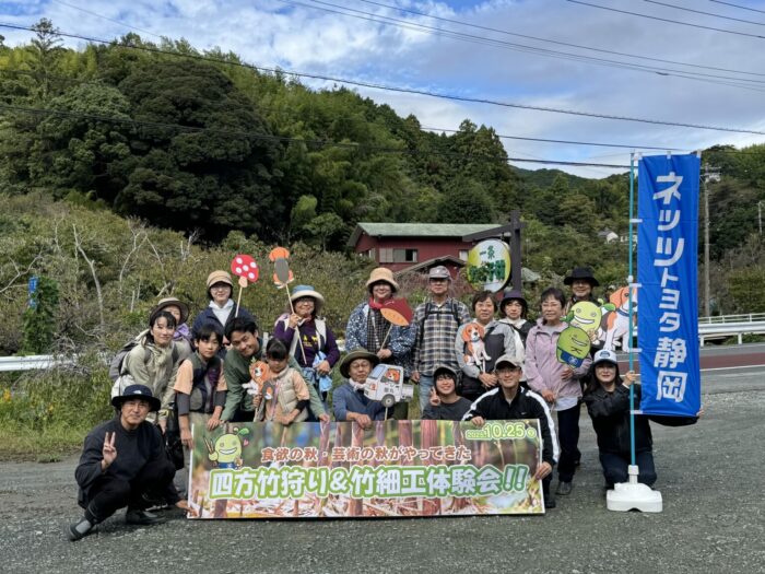 「多くの方に南伊豆に訪れてもらい、地域の良さと一条たけのこ村を知っていただきたい!」という思いから、ここ一条たけのこ村で秋に収穫ができる「四方竹狩り」と、「竹細工体験」をネッツトヨタ静岡で企画し、参加者を募集し行っております!