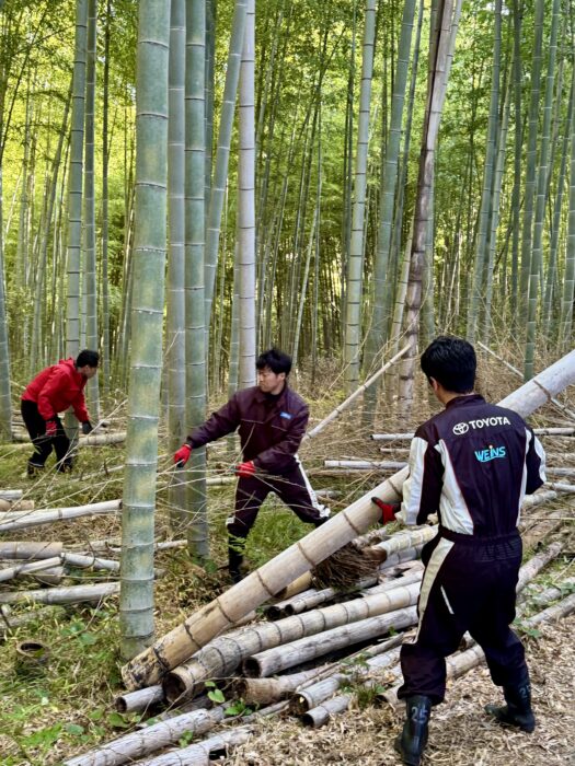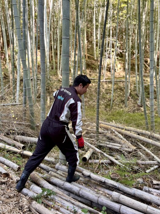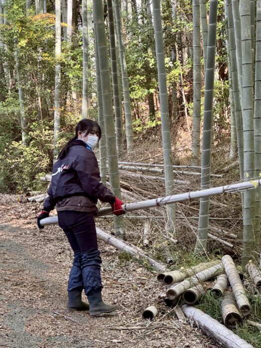 今回の作業は、古くなった竹や倒れている竹、過去に切り出されて放置されていた竹の片付けが中心。倒壊した竹を一つひとつ丁寧に引き出し、運び出す作業は体力を要しますが、山の景観が少しずつ整っていく様子に達成感を感じました。
