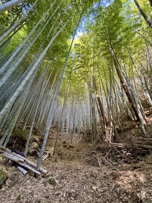 見上げるほど太く大きく育った竹が多く、4年以上経った立派な竹が林立するこの山は、タケノコも大きく育つ力強い土壌を持っているとのことです。