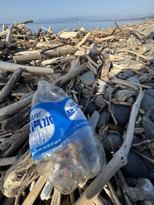 ここで捨てられたゴミと思われるものもありますが、多くは漂着してきたゴミが多いような感じがしました。(これは上海から流れついたのか?)