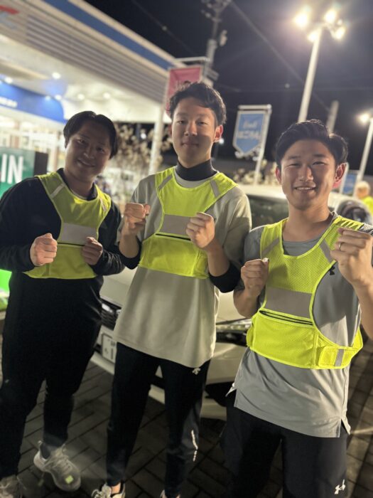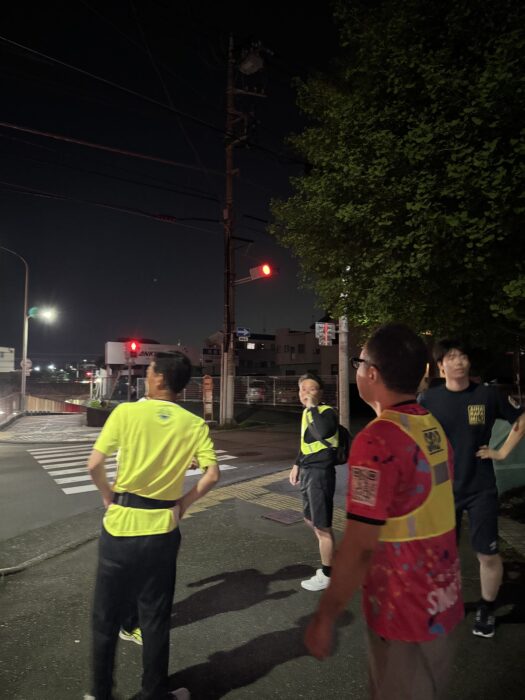 ランニングパトロール時は防犯意識の喚起の為に、活動中にすれ違う市民の方に「こんばんわ」と声がけをさせていただいております。また黄色い専用のビブスを着用しておりますが、この活動を「見せること」も防犯活動に繋がります。